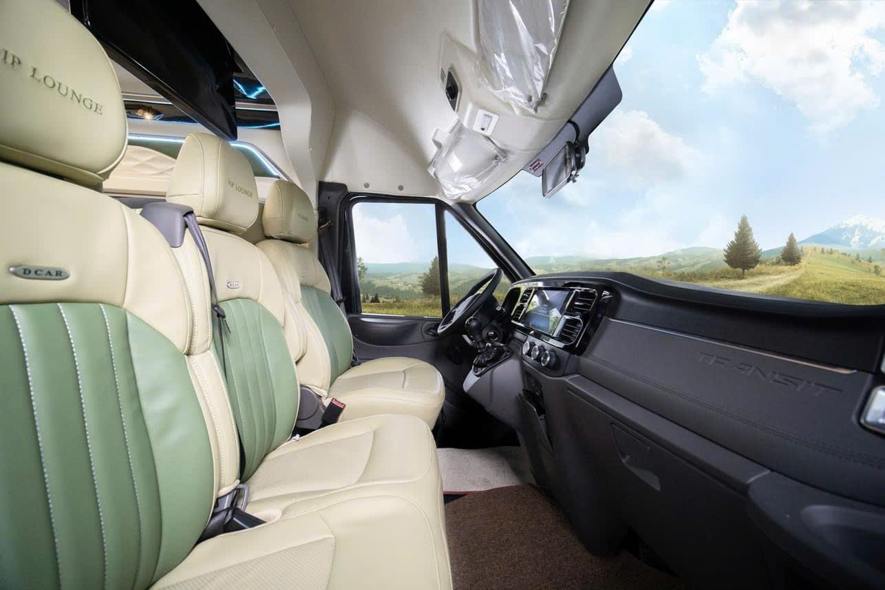 Ghế bọc da cao cấp, ngả lưng thoải mái, khoảng cách rộng rãi.